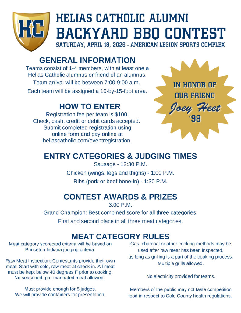 Helias Catholic’s 2026 Crusader Alumni Backyard BBQ Contest is Saturday, April 18, at the American Legion Sports Complex!